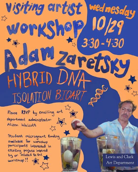 The event is organized by the Departments of Biochemistry and Molecular Biology, Biology, and Arts at Lewis & Clark College.